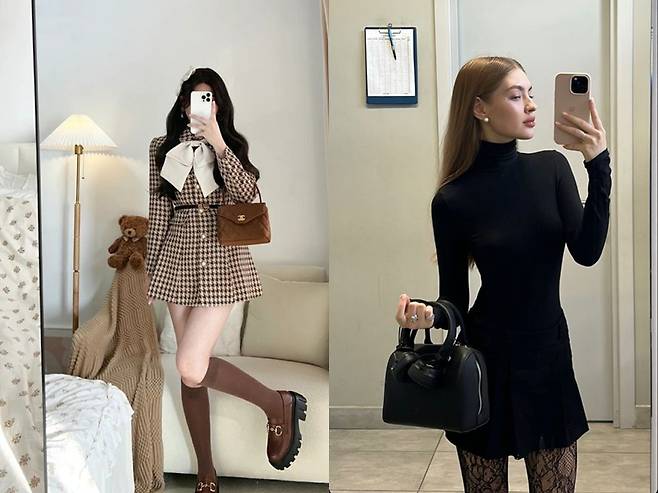 레드&네이비 체크가 어우러져 홀리데이 느낌을 물씬 풍기는 벨트 드레스입니다. 슬림핏 디자인에 벨트로 허리라인을 강조해 깔끔하고 세련된 무드를 연출해줍니다. 넉넉한 사이즈의 원포켓 디자인으로 수납력을 높이고, 얇은 체크라인으로 포인트를 주어 깔끔한 룩을 연출해주는 아이템입니다. 세미하이넥 벨티드 슬림원피스 23BMO22color 입니다. 빨간색. 네이비 색상은 레드, 네이비 2가지 있습니다. 채도가 낮은 컬러로 겨울에 어울리는 포근한 컬러입니다. 울도 함유되어 있어 한겨울에도 따뜻하게 착용하실 수 있습니다. 레드 컬러는 베이직한 디자인이지만 연말 룩에 특별한 느낌을 더해줍니다. 기분 좋아지게 만드는 매력이 있어요! 세미 하이넥 벨트 슬림 드레스 23BMO22 골드 포인트 벨트와 버튼이 고급스러움을 한층 높여줍니다. 슬림핏의 A라인으로 여성스러운 무드를 연출해줍니다. 벨트는 체형에 맞게 조절할 수 있습니다. 다음으로 탈부착 가능한 점퍼형 칼라를 확인해보세요. 셔츠예요. 탈부착 가능한 점퍼형 카라 체크 셔츠 23BMB23상품명을 클릭하시면 온라인 스토어로 이동합니다. 독특한 하운드투스 체크 디자인이 돋보이는 체크 셔츠입니다. 위의 드레스처럼 연말룩을 연출할 수 있는 아이템이에요. 룩북 같은 블랙 아이템. 와 함께 코디하여 조화로운 포인트 컬러로 활용해보시면 어떨까요? 탈부착 가능한 점퍼카라 체크 셔츠 23BMB23color 입니다. 녹색. 컬러는 그린, 블랙 2가지 컬러로, 둘 다 캐주얼한 포인트 아이템으로 착용하기 좋습니다. 밑단을 깔끔하게 잡아주는 디자인으로 편안하게 착용해도 깔끔한 핏을 선사합니다. 칼라 탈부착이 가능한 점퍼형 체크 셔츠 23BMB23 칼라가 탈부착되어 점퍼처럼 활용 가능한 투웨이 체크 셔츠입니다. 마지막으로 라운드 넥 버튼 포인트 재킷입니다. 라운드넥 버튼포인트 자켓 23AGJ47 상품명을 클릭하시면 온라인스토어로 이동합니다. 울 소재의 포근한 질감이 돋보이는 라운드넥 자켓입니다. 클래식한 디자인이면서도 포켓과 단추가 포인트로 디자인되어 특별한 날 선택하고 싶은 아이템이에요. 핑크색 코어로 러블리함을 강조한 코디로 활용해보세요! 라운드넥 버튼 포인트 자켓 23AGJ47color 입니다. 분홍색. 블랙 컬러는 핑크, 블랙과 함께 고급스럽게 착용할 수 있는 컬러입니다. 노카라 라운드넥으로 디자인되어 셔츠, 폴라티 등과 레이어드하기 좋기 때문에 어디에나 쉽게 매치하기 좋습니다. 라운드넥 버튼 포인트 자켓 23AGJ47큰 버튼으로 쉽게 열고 닫을 수 있는 자켓이에요! 체크무늬의 디테일한 버튼을 사용하였으며, 외부 포켓은 활용성과 디자인까지 세심하게 고려한 아이템입니다. 오늘 발렌시아 룩북에 소개된 23F/W 연말룩. 룩 컬렉션은 어떠셨나요? 그 외에도 발렌시아 자체몰에서 더 많은 제품들을 확인해보세요! https://valencia.co.kr/ 발렌시아 스토어, 발렌시아 온라인 스토어 사랑받을 좋은 제품, 발렌시아 공식 온라인 스토어! valencia.co .kr 2023 FW 연말룩 인 발렌시아