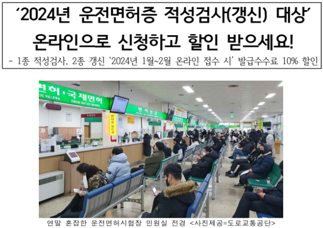 이런 상황에서 마블이 알려주는 훌륭한 팁! 이번 달부터 2월까지 두 달간! 2024년 운전면허 적성검사(갱신)를 온라인으로 신청하시면 발급수수료를 10% 할인해 드립니다.