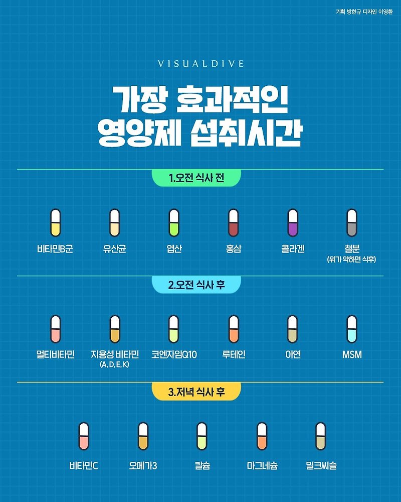 아침에 공복에 엽산, 철분, 유산균을 섭취하거나 식후에 비타민D, 칼슘, 오메가3를 섭취해야 한다고 생각합니다. 다음으로 영양제별 효능과 제품을 추천해드리겠습니다. 엽산