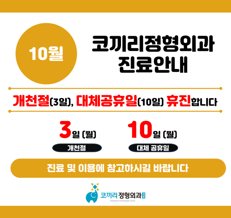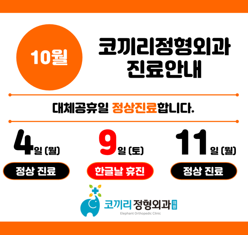 코끼리 정형외과 3일 치료 안내입니다. ⠀ 3월 2일(화)부터는 정상 진료가 가능하도록 하겠습니다.