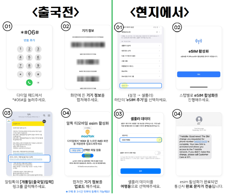 SIM 카드와 E-SIM 카드의 차이점은 물리적 SIM 카드의 유무입니다. USIM은 기존 한국형 USIM 칩을 미국산 칩으로 교체해 물리적인 칩을 사용하는 방식이다. 직관적이기 때문에 E-SIM 사용이 어려울 경우 쉽게 데이터를 쓸 수 있는 방법입니다. E-SIM은 물리적인 USIM 칩을 교체하지 않고도 세팅만 하면 사용할 수 있는 eSIM이다. 스마트폰에 등록하여 로컬 데이터를 이용하는 방법입니다. 개인적으로는 SIM을 물리적으로 교체하지 않고도 더 편리하기 때문에 이 SIM을 더 자주 사용하지만, 사용 가능한 모델이 제한되어 있으므로 구매하기 전에 사용 가능한 모델이 있는지 꼭 확인하세요. 이동통신사 권장사항 및 가격